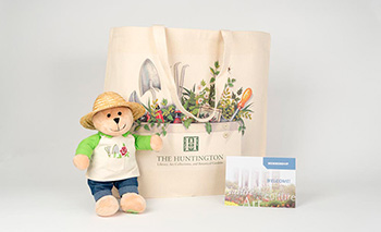 One Year of Membership for two adults and children and grandchildren under 18 + The Huntington Gardener Bear + The Huntington Garden Tools Tote $195