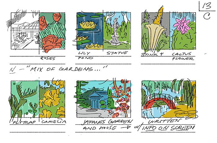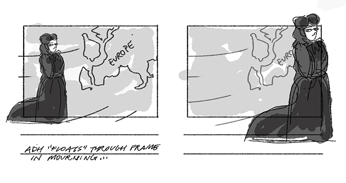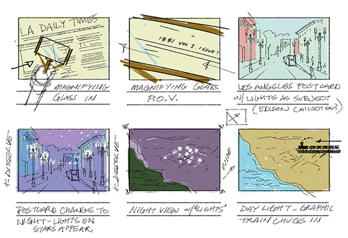 “I use storyboards to communicate with everyone involved with the production,” says Segurson. “I use them to plan my compositions or to provide a jumping off point for designers, cinematographers, actors, and even musicians.” Segurson’s artistry turns once-still photographs into active, clever animations that bring history alive.