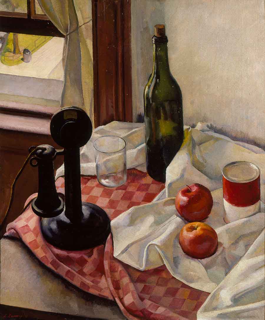 Luigi Lucioni, Still Life with Telephone, 1926, oil on board, 24 x 20 in. (61 x 50.8 cm.). Purchased with funds from the Art Collectors’ Council and the Virginia Steele Scott Foundation. The Huntington Library, Art Museum, and Botanical Gardens.