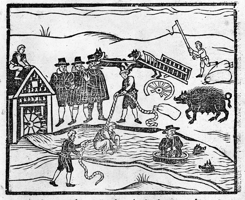 Witches apprehended, examined, and executed, for notable villanies by them committed both by land and water. With a strange and most true triall how to know whether a woman be a witch or not.Printed at London: [By William Stansby] for Edward Marchant, 1613 (RB 59439). Huntington Library, Art Collections, and Botanical Gardens.