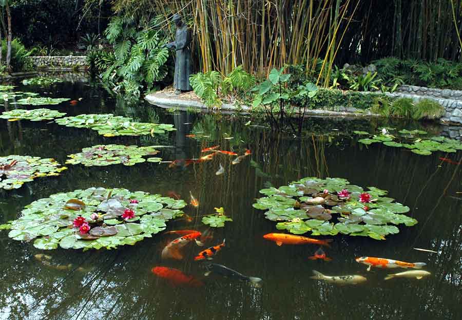 Clara Huntington’s bronze statue of St. Francis at The Huntington’s Lily Ponds. The Huntington Library, Art Museum, and Botanical Gardens.