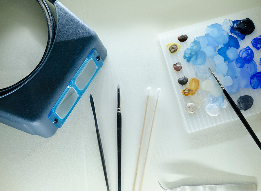 The tools of a conservator, on display at the “Project Blue Boy” exhibition. Photo by Lisa Blackburn.