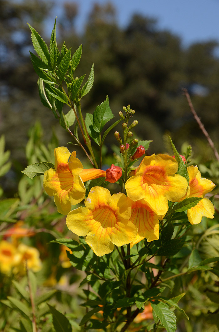 Southwestern native Tecoma 'Sunrise' is a tall shrub that blazes with summer color. Photo by Lisa Blackburn.