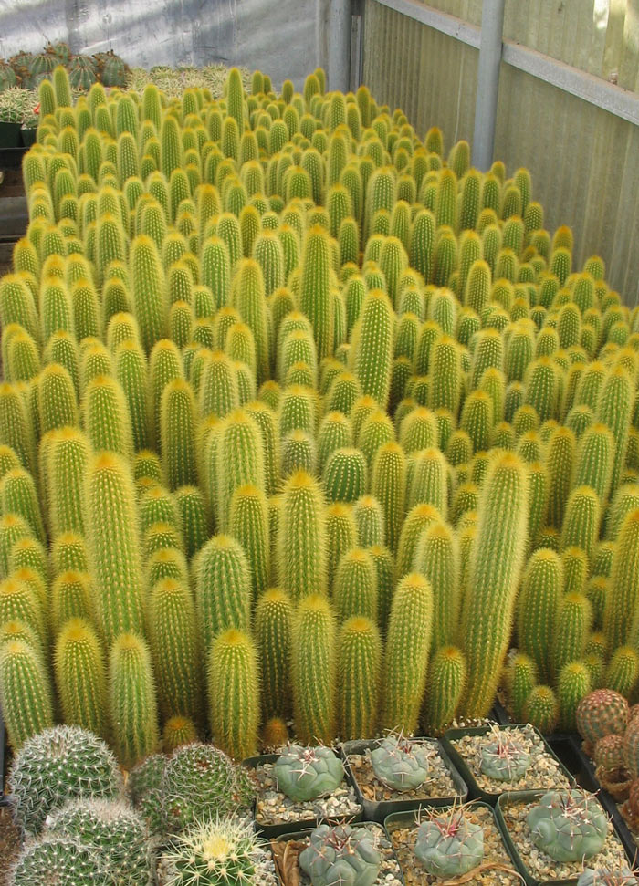 A favorite with cactus lovers, Weberbauerocereus johnsonii has brilliant yellow spines that are particularly beautiful when backlit by the sun. Photo by John Trager.