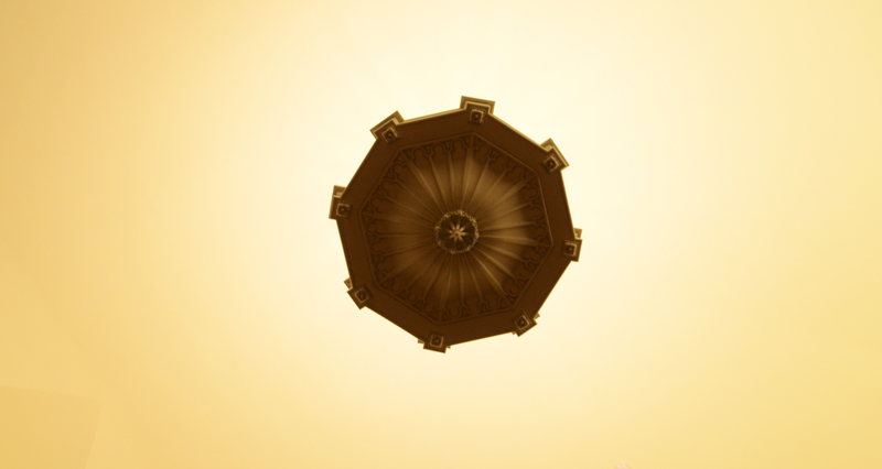 The walls and the floors were fairly straightforward; the chandeliers were not. Despite White’s efforts, no plans or purchase details were found. What she did find, however, were photographs of the original chandeliers, dated from 1920, when the building was under construction. These photographs then served as blueprints for the redesign and construction of three new chandeliers.