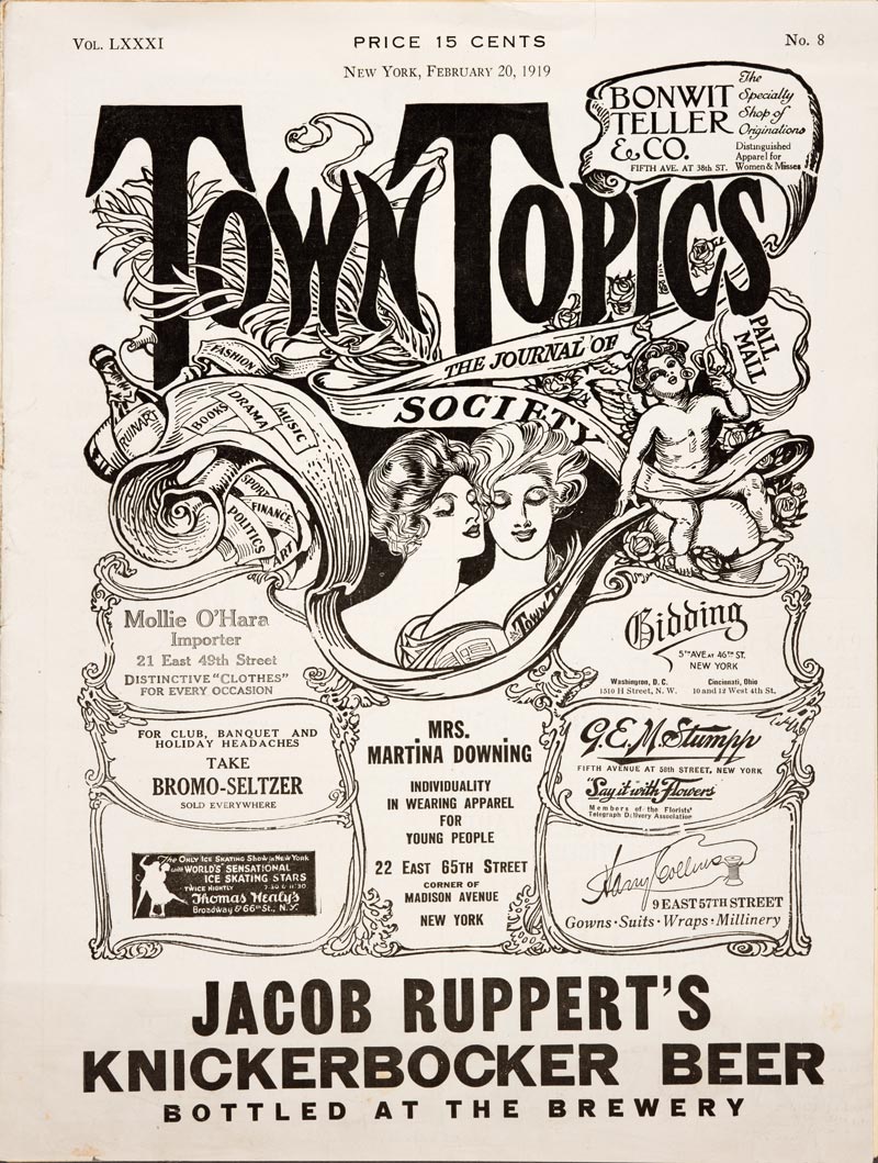 Front cover of an edition of Town Topics: The Journal of Society(Feb. 20, 1919). New York: Town Topics Publishing Company. The Huntington Library, Art Collections, and Botanical Gardens.