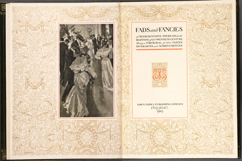 Fads and Fancies was published in 1905 by the Town Topics Publishing Co., headed by the colorful Col. William D’Alton Mann, a Civil War hero, inventor, self-made millionaire, and publishing magnate. His tabloid newspaper, Town Topics: The Journal of Society, was hugely popular. Its most hotly anticipated feature was its infamous “Saunterings” section, gossipy accounts of the doings of the day’s smart set made even more titillating by use of the “blind item.” Have you ever read a gossipy nugget containing wink-wink references like “a certain hard-partying ingénue” or “an unstable, aging British rocker”? If so, you can thank Col. Mann, who is often credited with the invention of the practice.