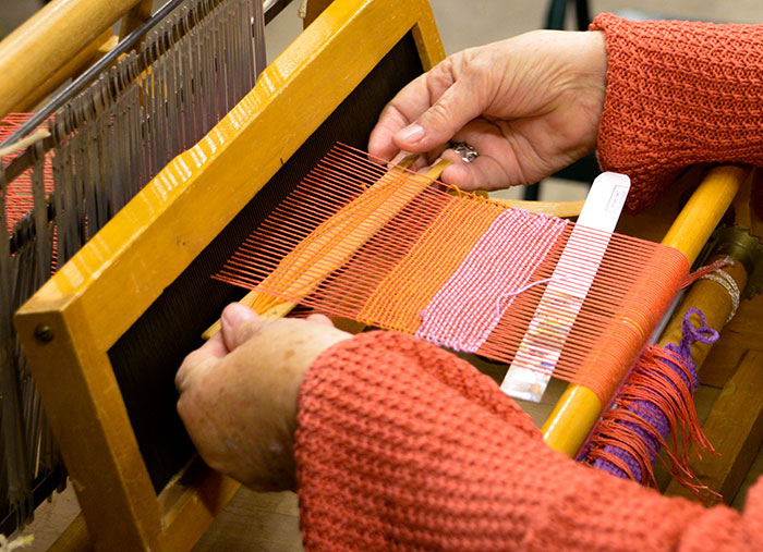 Weaving on a backstrap loom. Photo by Deborah Miller.