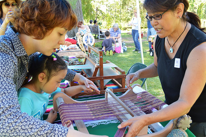 This year’s Fiber Arts Day may prove to be the biggest ever, said Herb Garden gardener Kelly Fernandez. Almost 50 craftspeople from local craft guilds are slated to set up their looms and spinning wheels and demonstrate many traditions of this ancient craft. Visitors can see various kinds of looms used for weaving techniques that range from inkle and Navajo to tapestry and free form. Huntington docents will present throughout the day to talk about relevant plants in the garden used by the weavers, spinners, and dyers.
