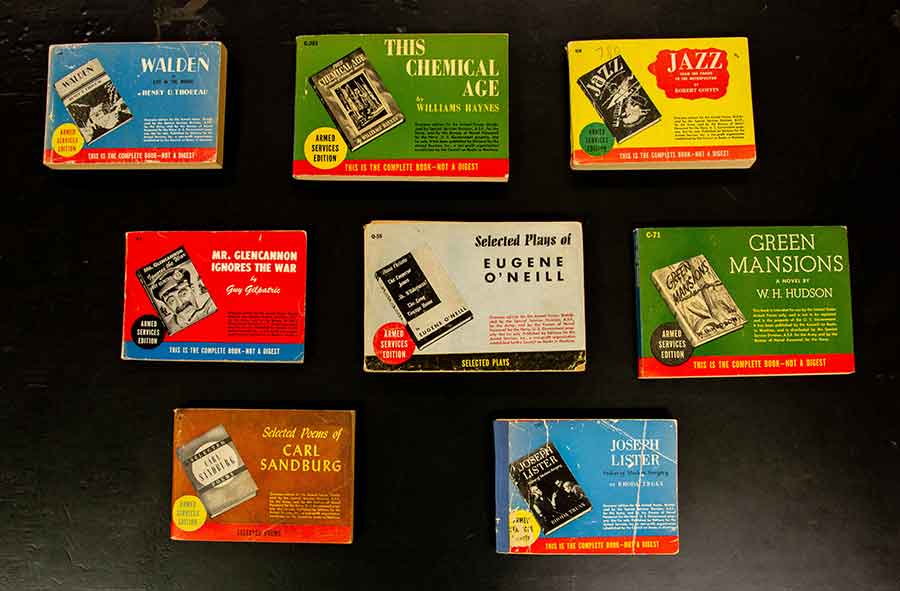 Armed Services Editions were reprints of selected works, designed and published specifically for servicemembers during World War II. They represented a wide range of genres and topics, both fiction and non-fiction. The Huntington Library, Art Collections, and Botanical Gardens. Photo by Deborah Miller.
