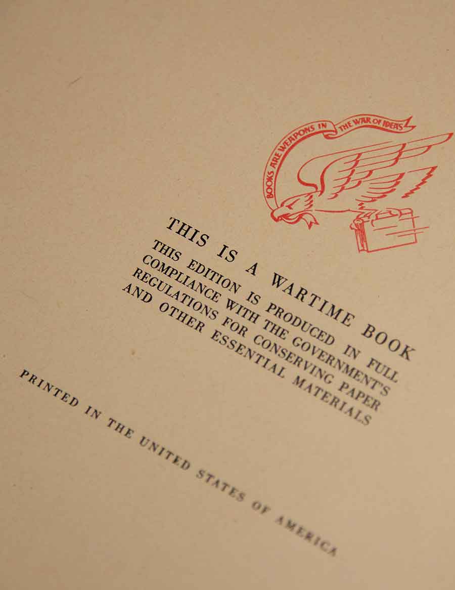 The Huntington holds more than a dozen of these Armed Services Editions acquired from a variety of sources. Some came with other collections, such as The Odyssey of Homer, newly translated into English prose by T. E. Shaw (better known as T. E. Lawrence or Lawrence of Arabia), which The Huntington acquired in Edwards Metcalf’s Lawrence collection. At least one of the books was donated directly by publisher Alfred A. Knopf in 1944, with the request that it not be exhibited until after the war, lest civilians “suffer from the itch to acquire them and all kinds of troubles . . . ensue.”