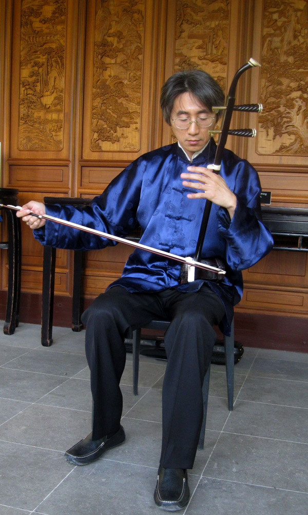 Yunhe Liang 梁云河 with his instrument, the erhu.