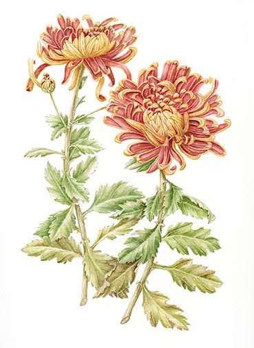 Joan Keesey (b. 1937), Chrysanthemum morifolium. Watercolor on paper, 12 x 9 in. © 2019 Joan Keesey. Image courtesy of the artist and the Botanical Artists Guild of Southern California.