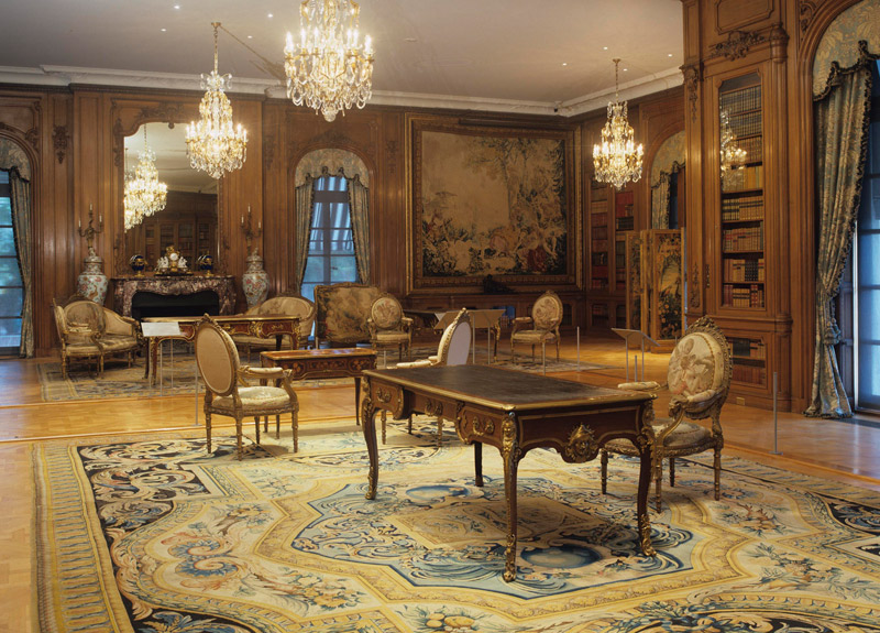 The Library room of the Huntington Art Gallery; one of the tapestries can be seen at the wall in the background. Photo by Tim Street Porter.