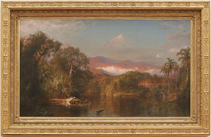 Painter Frederic Edwin Church visited South America after reading Alexander von Humboldt’s description of its unspoiled beauty. Church’s monumental Mount Chimborazo, 1864, compresses into one painting the high desert, mountains, and jungle found in Ecuador. Huntington Library, Art Galleries, and Botanical Gardens.
