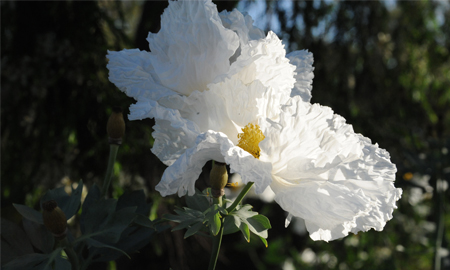 The trouble is that there is simply too much news to share. It seems every night I have a couple of fresh items that might be of interest to people watching activities at the Botanical Gardens. Certainly I wanted to tell you about the hazards of over-compaction, as we are experiencing some bona fide lessons in regard to soil around the Botanical Center. And I was thinking, just yesterday, how absolutely spectacular the Matilija poppies are in the parking lot—right now—remarkably overblown flowers of living white crepe paper. Or the fragrance of the Giant Burmese Honeysuckle at the main entry to the Mishler Center. . . worth an encounter.