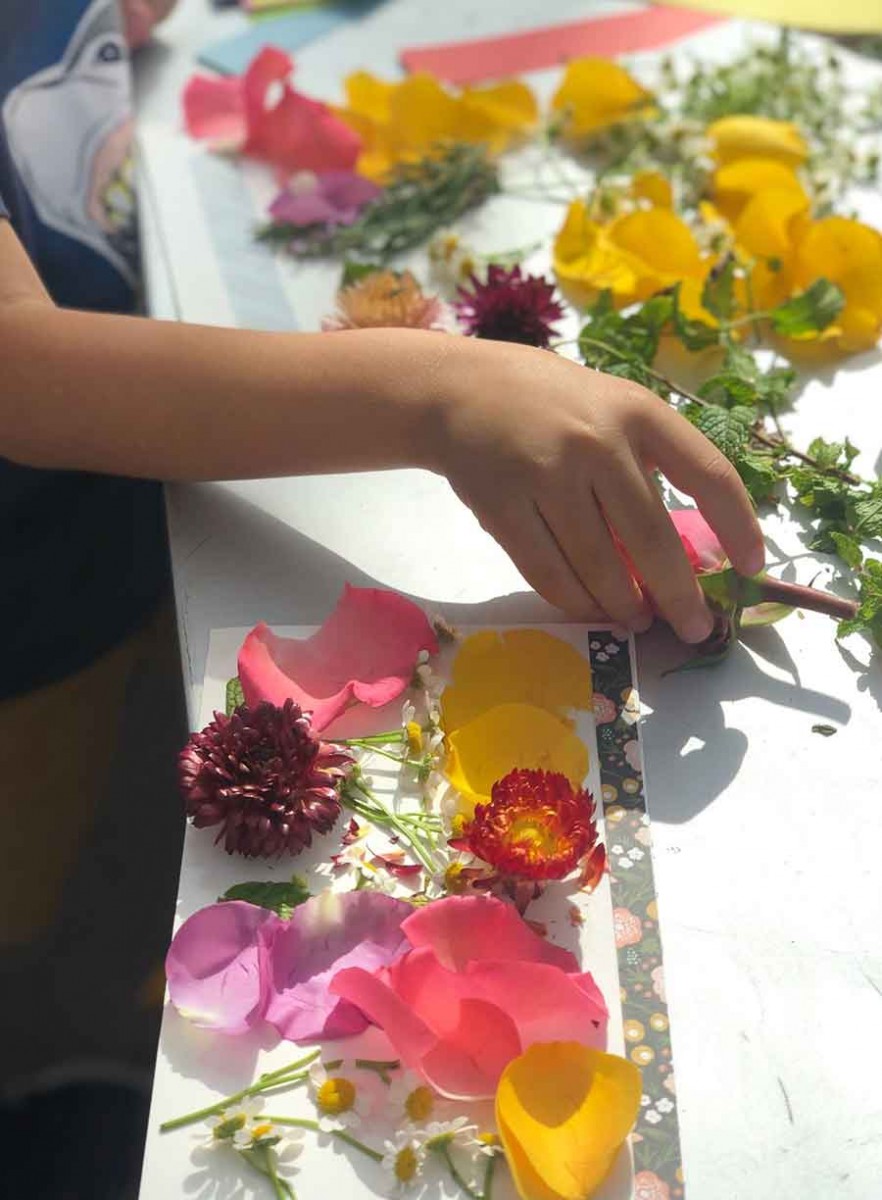 The Creativity Lab series, shared via Instagram, features activities for children and families to enjoy at home, such as making fragrant plant collages. Photo by Maria Ahverdyan. The Huntington Library, Art Museum, and Botanical Gardens.