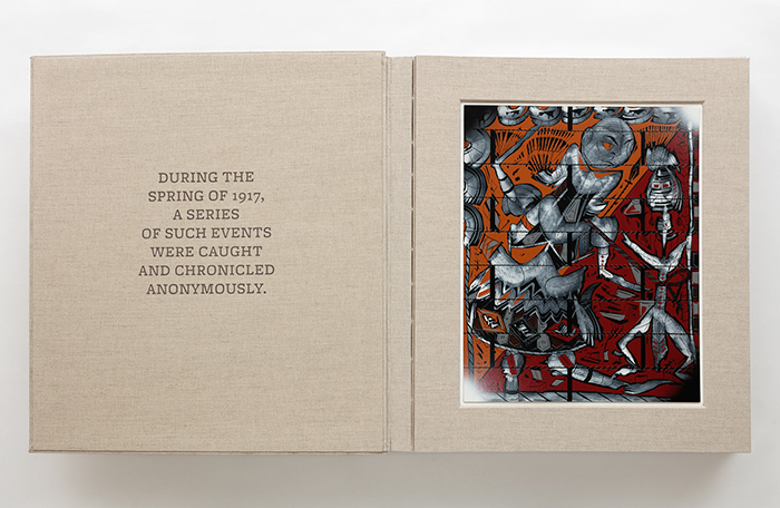 One of the books, 12 Tableaux in which the Avant-Garde and the Folkloric Kissed, refers to early 20th-century Russian artist Natalia Goncharova, who—in the early, heady days of the Russian Revolution—bridged the gap between the folkloric and the avant-garde. “That visual hybridity made sense to me 100 years later,” says Pittman.