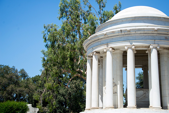 The Huntington's founders, Henry and Arabella Huntington, are interred under the Mausoleum, designed by John Russell Pope (1874–1937). Photo by Kate Lain.