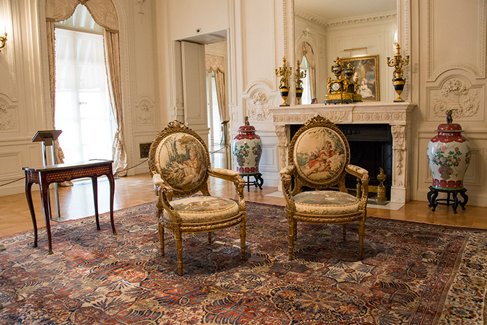 Like other wealthy Americans during the Gilded Age, Arabella Huntington prized the art and design of late 18th-century France for its fine craftsmanship and association with the royal court of Louis XVI and Marie Antoinette. In the Large Drawing Room of the Huntington Art Gallery (formerly the Huntingtons' home), many decorative features, including the paneling and chimneypiece, derive from examples in the Petit Trianon at the Palace of Versailles. Photo by Kate Lain.