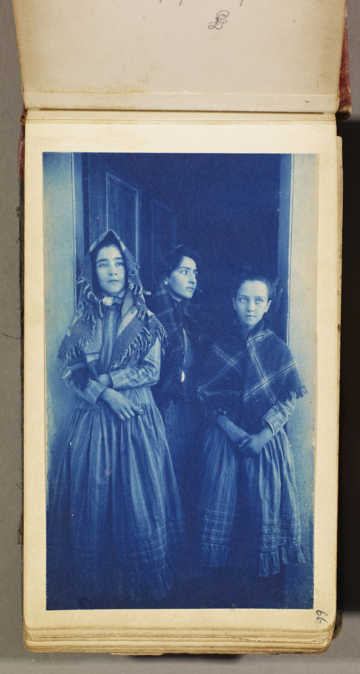 Author Helen Hunt Jackson set her 1884 novel Ramona on the fictional Moreno Rancho, a site allegedly inspired by Rancho Camulos, the Santa Clara River Valley home of Ygnacio del Valle and his family. Soon after Jackson penned her melodramatic bestseller, Charles F. Lummis, an influential writer, editor, and enthusiastic amateur photographer, visited the ranch and fell in love with the setting. He also fell in love with del Valle’s daughter, the 16-year-old Susanita. Over the course of many visits, Lummis made a series of cyanotype (or blueprint) photographs, including striking pictures of Susanita and her sisters. In 1888, he presented Susanita with a special leather-bound album, embossed with her name in gold, containing 83 images and two heartfelt poems.