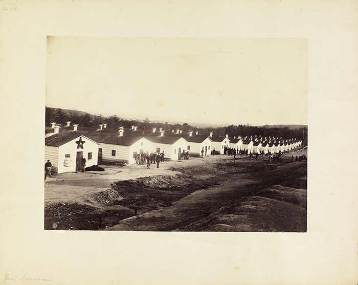 Camp Convalescence, Alexandria, Virginia. Jan. 1864. Albumen print. Photograph by Andrew J. Russell (1829–1902). The Huntington Library, Art Collections, and Botanical Gardens.