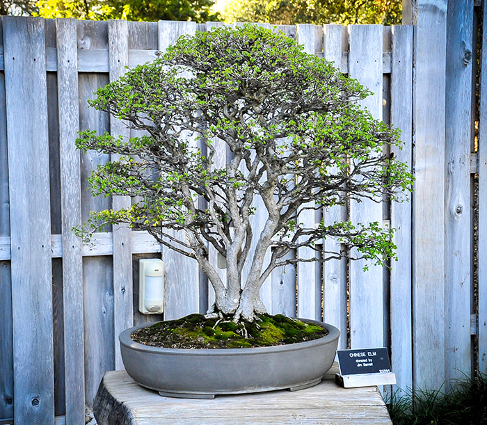 The tree is one of two important gifts we received this past year from respected Southern California bonsai artists. Al Nelson of Irvine, Calif., donated the oak. Jim Barrett of Arcadia, Calif., gave us a classic Chinese elm (Ulmus parvifolia), which is styled in a clump form.