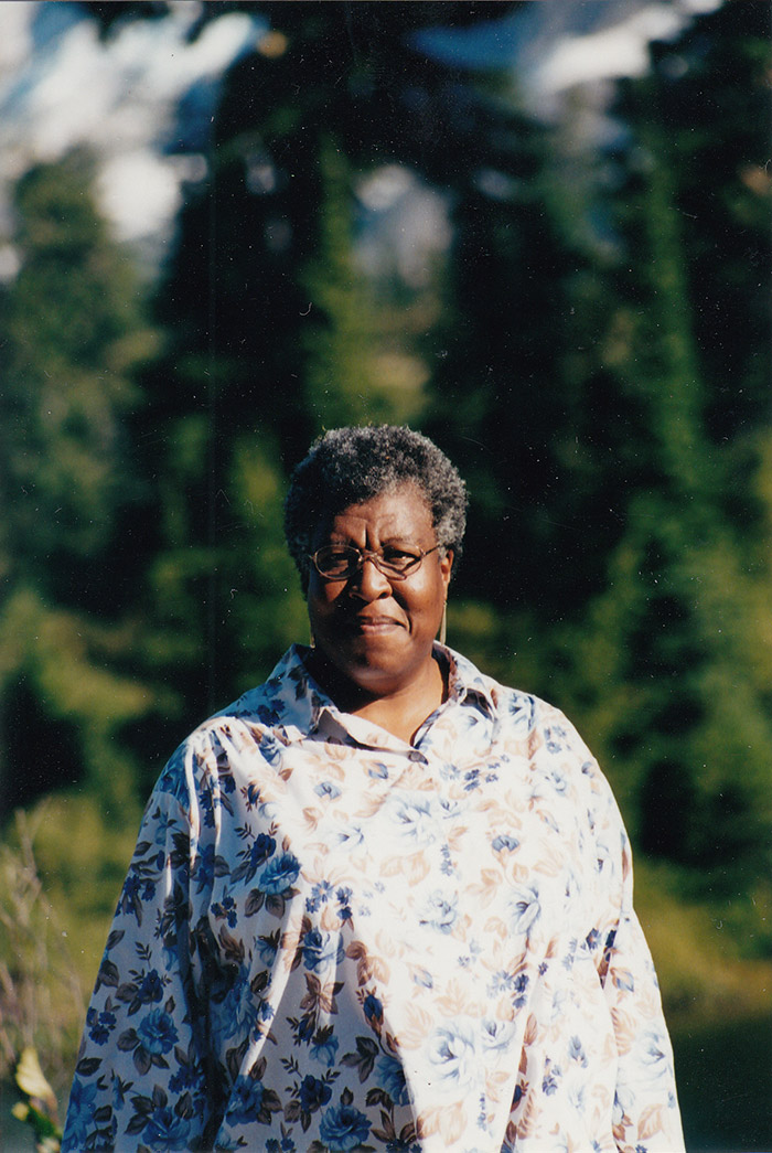 Octavia E. Butler near Mt. Shuksan, in the state of Washington, 2001. Photographer unknown. The Huntington Library, Art Collections, and Botanical Gardens. Copyright Estate of Octavia E. Butler.
